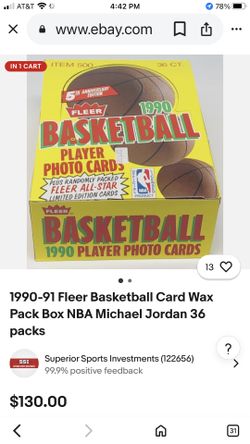 1990 Fleer Basketball Wax Pack Box Unopenrd$110Glendale, AZ