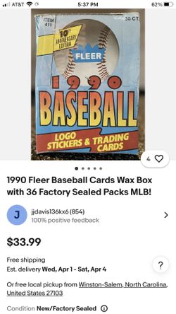 1990 fleer baseball wax box 36 unopened packs$25Glendale, AZ