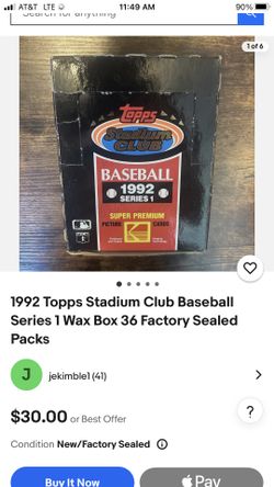 Topps, 1992 series 1, Stadium club, baseball wax pack box… 36 packs$35Glendale, AZ