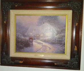 1990 Thomas Kinkade Christmas Cottage Painting Only 500 Made, Frame Has Some Damage, Actuall Painting Size 12x16"$180Seal Beach, CA