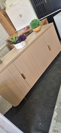 BEAUTIFUL FLUTED SIDEBOARD IN LIGHT OAK COLOR 4 DOORS AND REGULABLE SHELVES 57X17X35 BRAND NEW$250Hickory Creek, TX
