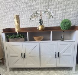 BEAUTIFUL SIDEBOARD OR COFFEE STATION FARMHOUSE STYLE .WOOD TOP 56X17X35 REGULABLE SHELVES BRAND NEW$260Hickory Creek, TX