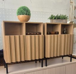 2 MODERN INDUSTRIAL STYLE NIGHTSTANDS IN AOK WOOD COLOR AND BLACK METAL LEGS 24 WIDE 30 HEIGHT/ NEW$240Carrollton, TX