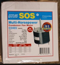 Mars 3465HS Condenser Fan Motor,1/6 to1/3Hp,1075 RPM, 208-230V (5KCP39LGU735S)$120Mesa, AZ