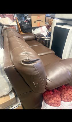 2 Brown Faux Leather Sofas$30Manteca, CA