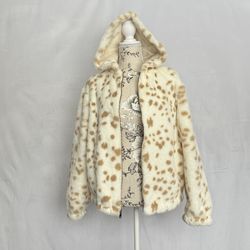 Nine West Women faux fur Animal Print cheetah zip-up Teddy jacket Cream Size M$29Roaming Shores, OH