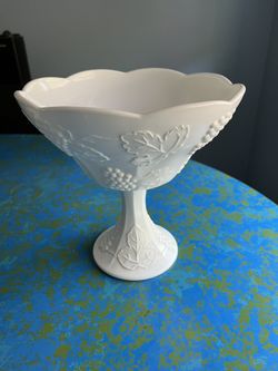 Indiana Glass “Grape Vine And Leaf” Pedestal Milk Glass Compote$20Glendora, CA