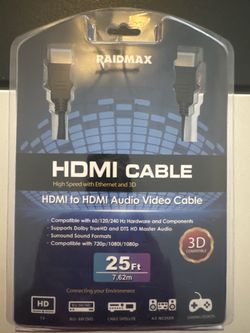 HDMI Cable 25ft RAIDMAX – High Speed with Ethernet & 3D (NEW, 8 Available)$15San Diego, CA