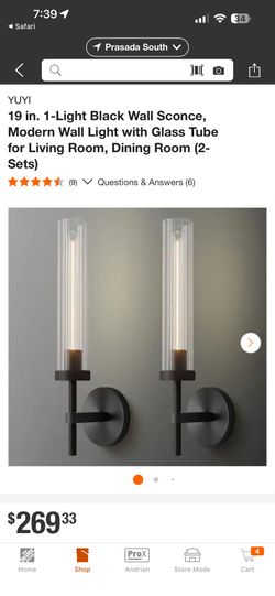 YUYI 19 in. 1-Light Black Wall Sconce, Modern Wall Light with Glass Tube for Living Room, Dining Room (2- Sets)$190Surprise, AZ
