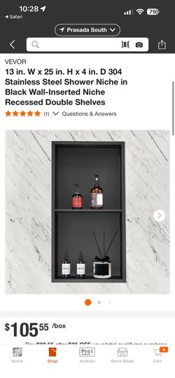VEVOR 13 in. W x 25 in. H x 4 in. D 304 Stainless Steel Shower Niche in Black Wall-Inserted Niche Recessed Double Shelves$70Surprise, AZ