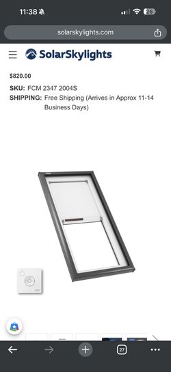 VELUX Fixed Curb Mount Skylight FCM 2347 with Solar Room Darkening Shade (Fits Outside Curb 26-1/2 x 50-1/2 in)$430Surprise, AZ