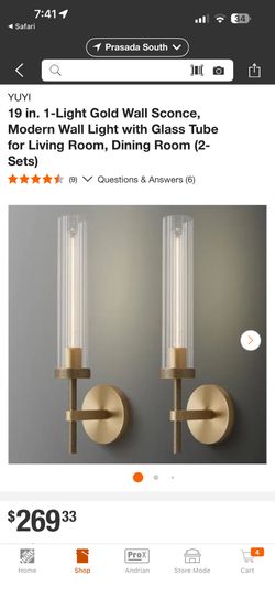 YUYI 19 in. 1-Light Gold Wall Sconce, Modern Wall Light with Glass Tube for Living Room, Dining Room (2- Sets)$190Surprise, AZ