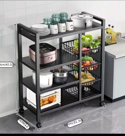 New! Movable Storage Rack, Adjustable 4-storey Kitchen Shelf with 3 Wire Baskets, Kitchen Organizer And Storage, Metal Shelf Rack with Wheels, Suitabl$25Los Angeles, CA