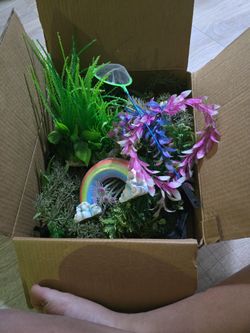 Box Full Of Fake Plants Tiny Net And A Tiny Rainbow For Aquarium Some Of The Plants Glow Up In The Blue Light$30Ontario, CA
