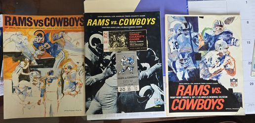 These are vintage Los Angeles Rams vs. Dallas Cowboys football programs and ticket stubs $25Santa Ana, CA