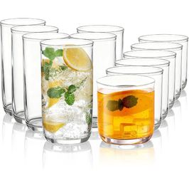 Drinking Glasses Set of 12, PET Clear Plastic Highball Glasses 14oz & Whisky Cocktail Glasses Set 11.5oz, Heavy Duty Unbreakable Water Glasses Cup Tum$24Queens, NY