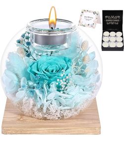 Gifts for Women Preserved Roses in Glass Dome with Scented - Romantic Preserved Flower for Women, Girlfriend, Wife, Mom, Grandma, Sister, Her-Cyan$30Queens, NY