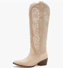Size 7.5 Women Cowboy Boots Embroidered Knee High Suede Boots 1.96 Inch Heels Pull on Cowgirl Boot Wide Calf Tall Boot Half Zipper Chunky Pointed$50Queens, NY