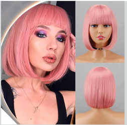 Pink Wigs for Women Short Synthetic Bob Wig with Bangs Glueless Shoulder Length Apple Cut Colorful Cosplay Wig for Girls Daily Party and Halloween Cos$10Queens, NY