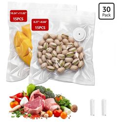 30 Pack Reusable Vacuum Sealer Bags for Vixino, BPA-Free Heavy Duty Sous Vide Bags (15 Small, 15 Medium) with 2 Sealing Clips, Leakproof Food Storage $14Queens, NY