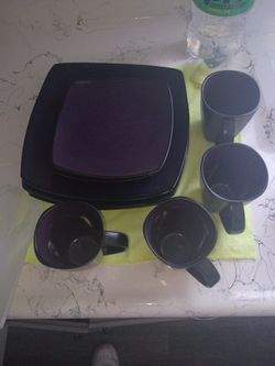 Purple And Black Plates And Cups $10San Bernardino, CA