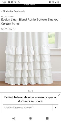 Pottery Barn Kids Evelyn Linen Blend Ruffle Bottom Blackout Curtain Panel Light Gray 44×63 $109$45Prairie View, IL