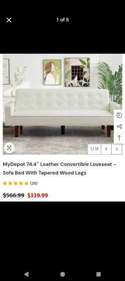 74.4 Leather Convertible Loveseat Sofa Bed With Tapered Legs$120San Bernardino, CA