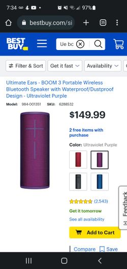 UE Boom 3 Wireless Bluetooth Speaker With Waterproof/Dustproof Design$120Suisun City, CA