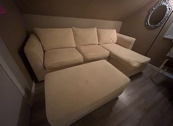 Suede Cream Chaise Couch With Storage Ottoman $150West Babylon, NY