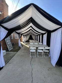 Tent 10x20 With Draping, 4 Tables , 24 Plastic Chairs , 4 Tablecloth $250$300Rosemead, CA