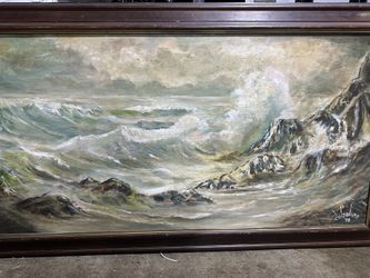 Oil Painting Ocean Waves By Cliffs Size 53.6 Inches By 29.6 (with A Frame)$150Seattle, WA