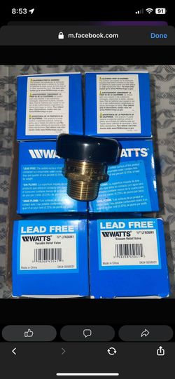 Watts 3/4" LF N36M1 Vacuum Relief Valve Lead free, made in China, SKU: 0556031 Brand new $20 each or box of 12 for $200$20San Antonio, TX