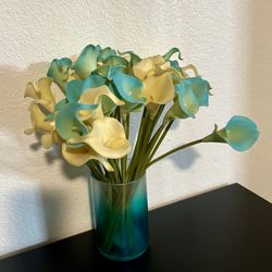Blue Glass Vase 4” x 6” with Faux Tulip Arrangement$10Midland, TX