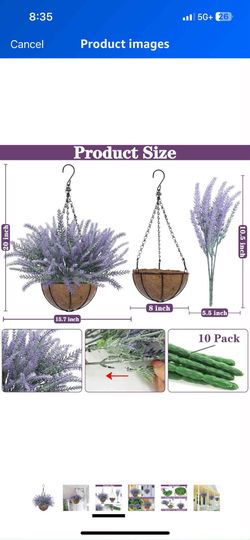 Fake Hanging Plants Baskets Artificial Flowers for Outdoors Spring Summer Decoration, Realistic UV Resistant Faux Lavender Hanging Flowers for Porch H$15Bakersfield, CA