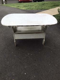 Antique rustic wooden tilt-top table with storage compartment. $25Holland, PA