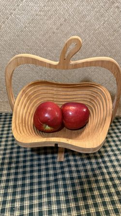 VINTAGE Oak Collapsable Apple Shaped Spiral Wood Fruit Bowl $15Sacramento, CA