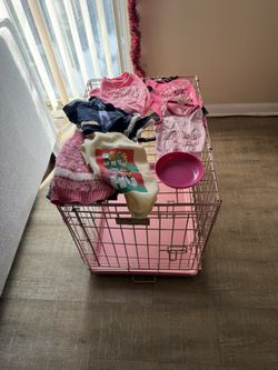 PINK DOG CAGE WITH REMOVABLE TRAY EXCELLENT CONDITION COMES WITH CLOTHES AND A BOWL$40Lakeland, FL