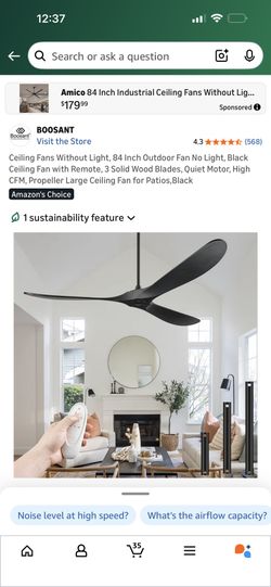 BOOSANT Ceiling Fans Without Light, 84 Inch Outdoor Fan No Light, Black Ceiling Fan with Remote, 3 Solid Wood Blades, Quiet Motor, High CFM, Propeller$200Marion, TX
