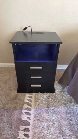 Black Nightstand with Charging Station LED Lights, Side Table with 3 Drawers, Modern End Table with Strips USB & Outlet, Beside Wooden Cabinet f$89Chandler, AZ