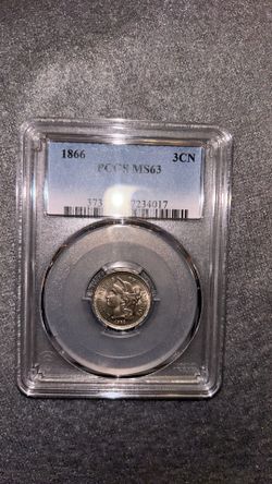 1866 Three Cent PCGS MS63 RARE 159 Years Old OBO.$340Laguna Niguel, CA