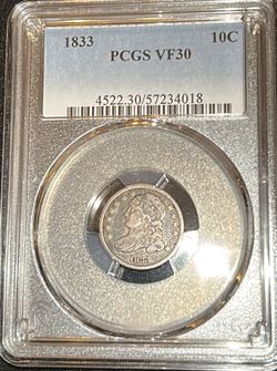 1833 10 Cent Capped Bust Dime Silver 485000mintage Certified PCGS$235Laguna Niguel, CA