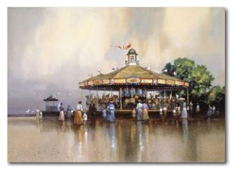 Gold Wood Framed Paul Landry 1990 Seaside Carousel Greenwich Workshop Lmd.Ed. Lithographic Print Personally Approved & signed by the artist No. 459$256Fort Lauderdale, FL