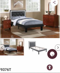5- Pc. Black New Twin Bed Set. 1. Bed, 2. Mattress, 3, Nightstand, 4 Dresser. 5 Mirror. Nightstand, Dresser, Mirror. $625Los Banos, CA