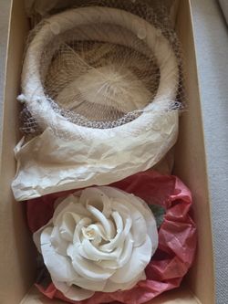 Vintage White Pillbox Hat & Fabric Rose Accessory$30Fresno, CA