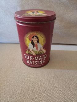Vintage Sun-Maid Raisins Advertising Tin Canister Collectible Fresno California $5Fresno, CA