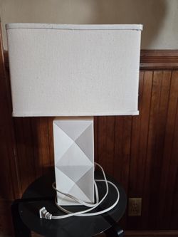 White Ceramic Geometric Base Table Lamp with Rectangular Shade$20Fresno, CA
