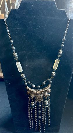Bohemian Style Necklace â Ornate Metal Pendant, Glass Beads & Chain Fringe$10Los Banos, CA