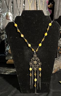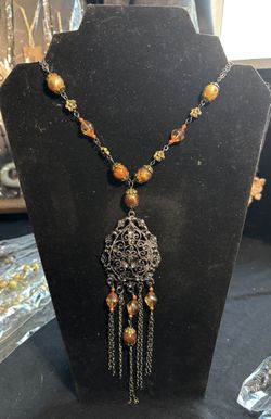 Boho Style Beaded Pendant Necklace â Filigree & Amber-Tone Accents (24â26â)$10Los Banos, CA