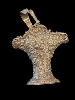 Repousse by Jenkins and Jenkins Sterling Silver Basket with Swing Handle (#25) Weight of 1lb 4 oz Sterling Silver. 8.5” tall & 9.25” length.$2,800Bradenton, FL