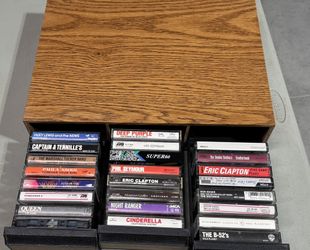 Vintage 3 Drawer 42 slot Audio Cassette Tape Storage Holder Case Faux Wood Grain with 24 tapes includes. Queen, Foreigner, The Moody Blues, Cinderella$35Bradenton, FL